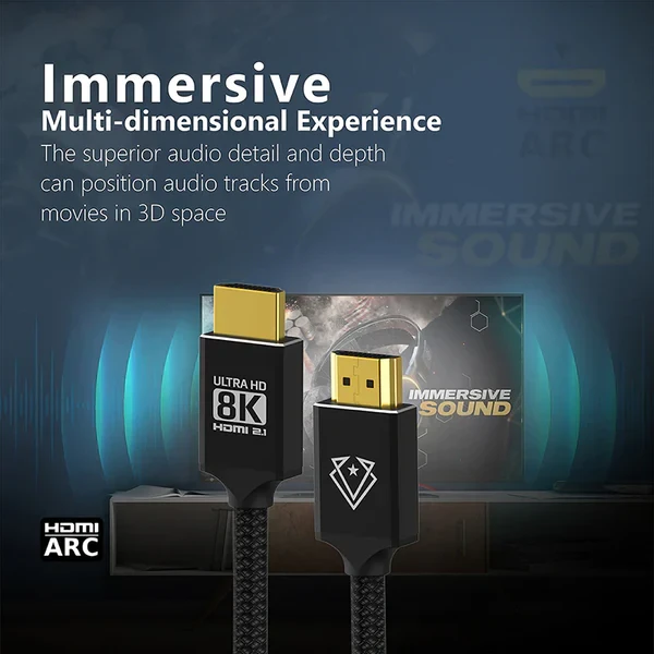 The Vertux VertuLink-150 is a high-performance 1.5-meter HDMI cable designed to deliver stunning 8K Ultra HD video with Dynamic HDR for the ultimate viewing and gaming experience. Backward compatible with all HDMI devices including Blu-ray players, game consoles, and 4K displays, this cable future-proofs your setup for the next generation of visuals. Supporting up to 48Gbps bandwidth, it also features eARC for enhanced audio return, 3D video, and advanced gaming features like ALLM (Auto Low Latency Mode), VRR (Variable Refresh Rate), and Quick Frame Transport (QFT). Compatible with Sony PS5, PS4, Xbox Series X/S, and a wide range of smart TVs and soundbars, the VertuLink-150 ensures premium audio-visual performance for gaming and entertainment.
