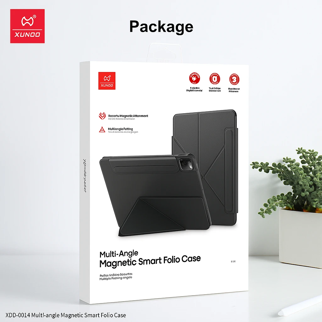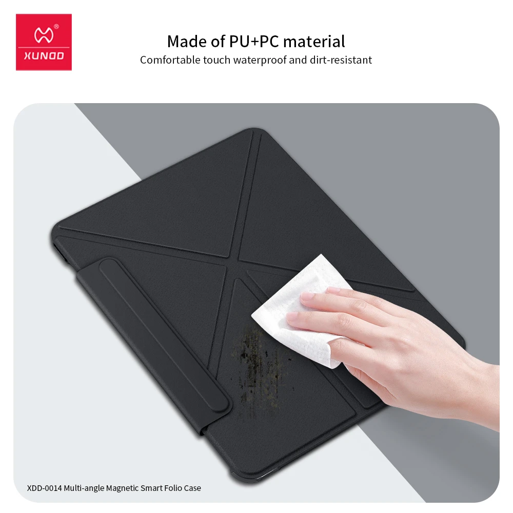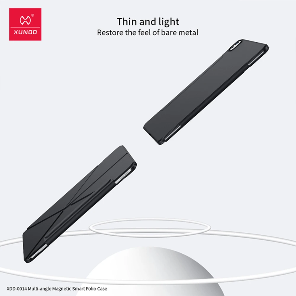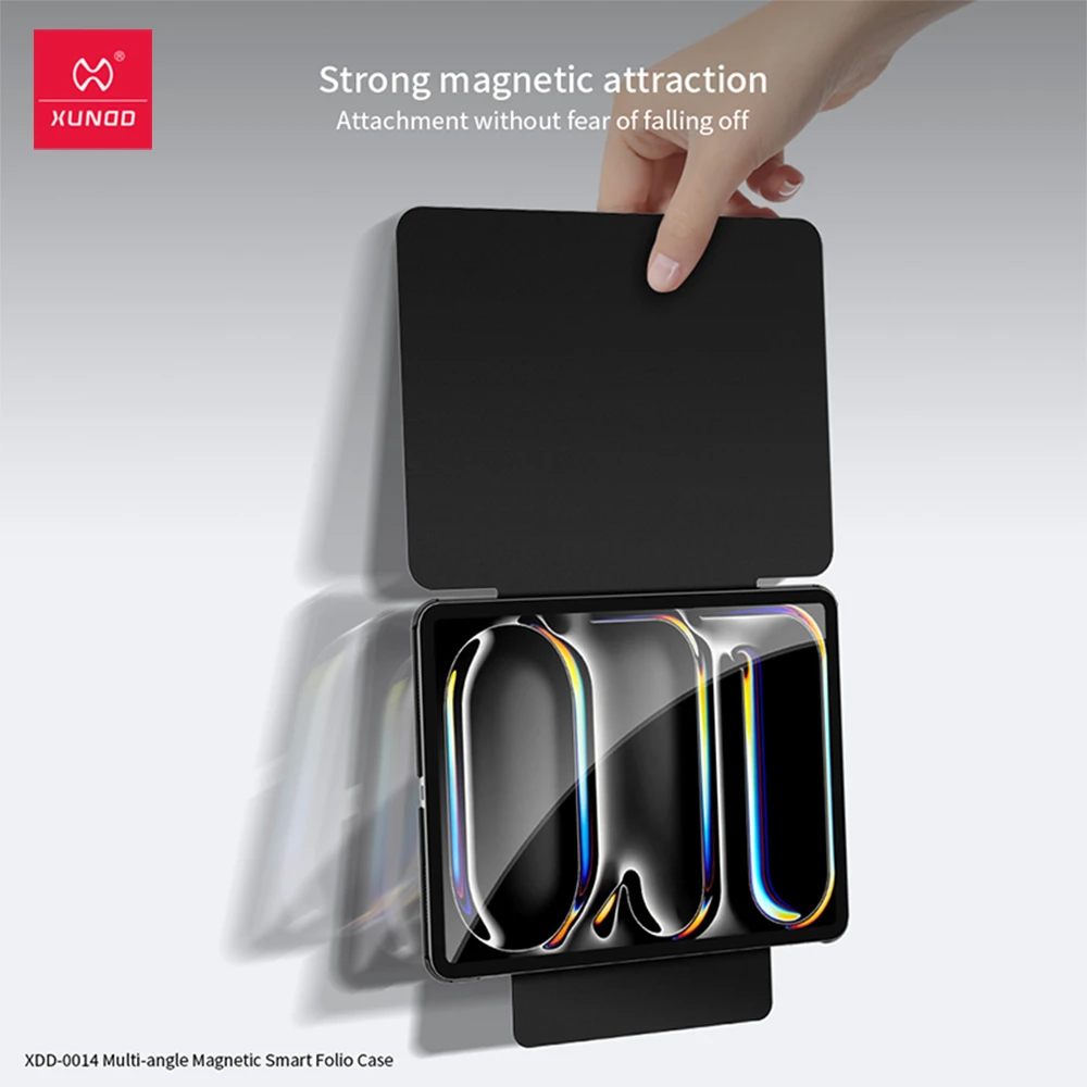 Protect your iPad with style and functionality using the XUNDD Magnetic Smart Folio Case. Crafted from premium PC+PU material, this case ensures durable protection against scratches and bumps while keeping your iPad slim and lightweight. The magnetic design supports auto sleep/wake and provides a secure hold, while the foldable X-cover stand offers multiple viewing angles for comfort in any situation. With a raised camera lip and magnetic pen holder, it’s built to match your daily needs.