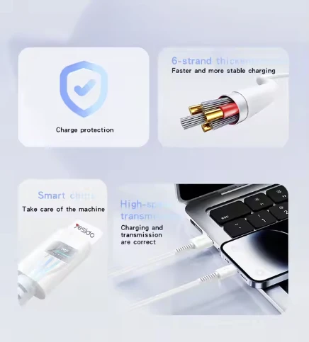 The Yesdio CA120L is a 1-meter USB-A to Lightning charging cable designed for fast and efficient charging of Apple devices. Crafted from environmentally friendly PVC material, it features a durable PVC jacket and pure copper conductors to ensure reliable performance. With a current output of 2A, this cable is compatible with MP3/MP4 players, cameras, mobile phones, computers, and tablets. Its compact packaging measures 21.1 x 7.5 x 3 cm and weighs 0.140 kg, making it convenient for storage and transport.