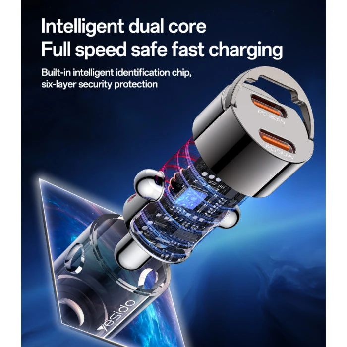 Yesido Super Fast Dual USB-C PD30W Mini Zinc Alloy Car Charger (Y69) Black