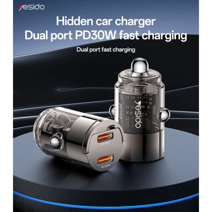 The Yesido Y69 Mini Hidden Car Charger is a compact and efficient solution for charging your devices on the go. Crafted from aluminum alloy with a transparent shell and pull-ring design, it offers both durability and a sleek aesthetic. Supporting fast charging up to 30W, it ensures quick power delivery to your devices. The charger is compatible with various protocols, including QC, PD, PPS, SCP, and SVP, making it versatile for different devices. Designed to fit into DC12V~24V car cigarette lighter ports, it is universally compatible with most vehicles. Additionally, built-in smart chips balance the charging distribution, providing safer charging for your devices.